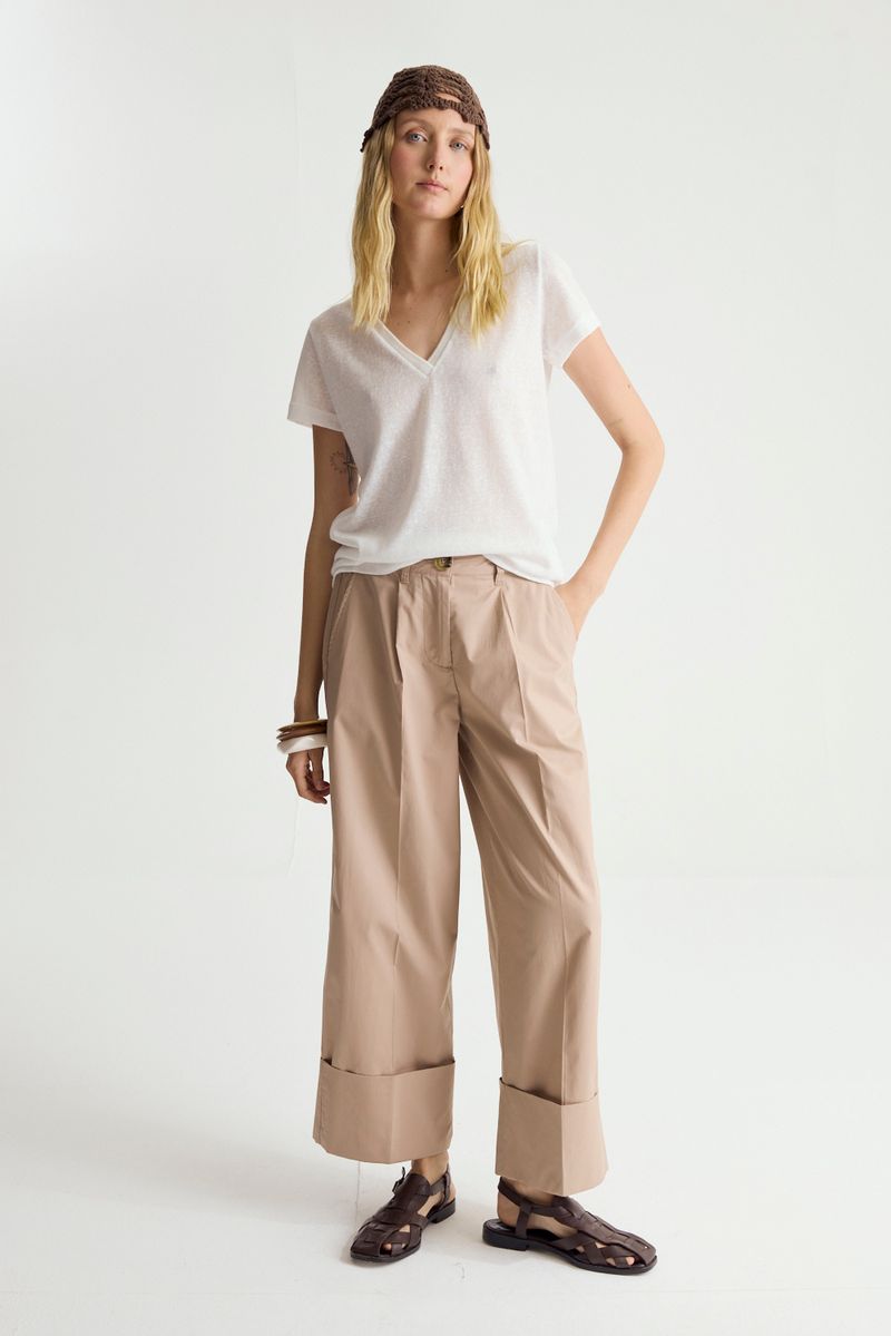Pantalón wide leg con tiro medio confeccionado en paper.tiene bolsillos ojales en espalda.