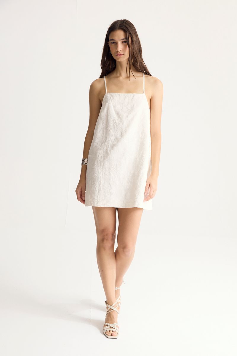 Vestido confeccionado en jacquard leafs,de calce regular con escote recto y breteles finos.