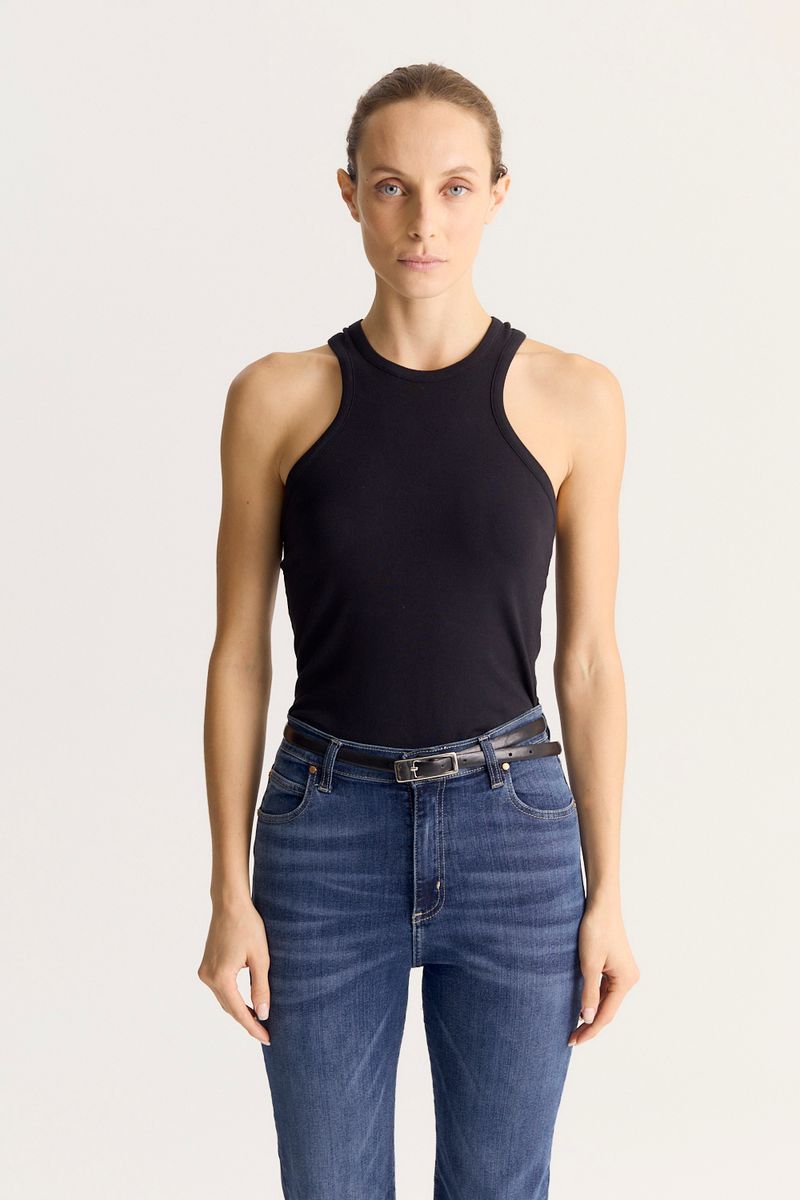 Musculosa de calce ajustado con escote a la base y breteles entrados en delantero que descubren bien los hombros confeccionada en jersey de algodon con elastano