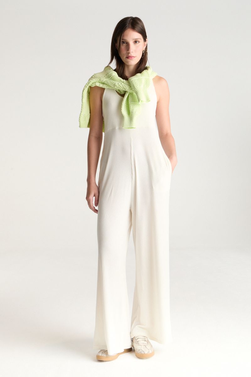 Mono de calce regular con escote redondo breteles anchos cruzados y destalle de sustracción en espalda en morley pesado de viscosa y elastano