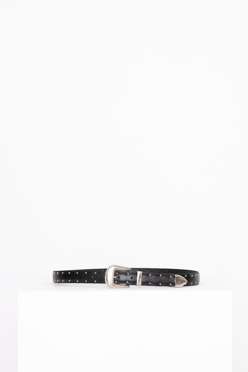 Cinto tejano con detalle de tachas, pasador y puntera metálica