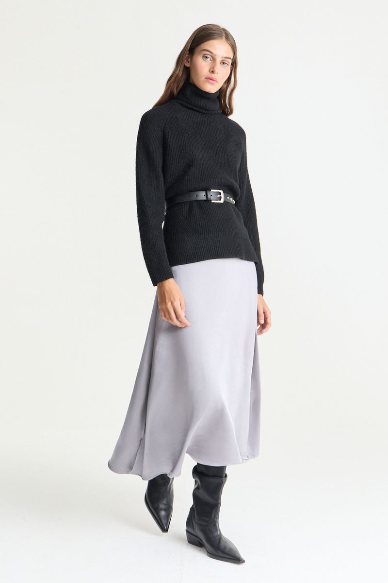 Falda de calce holgado y largo midi, realizada en satén