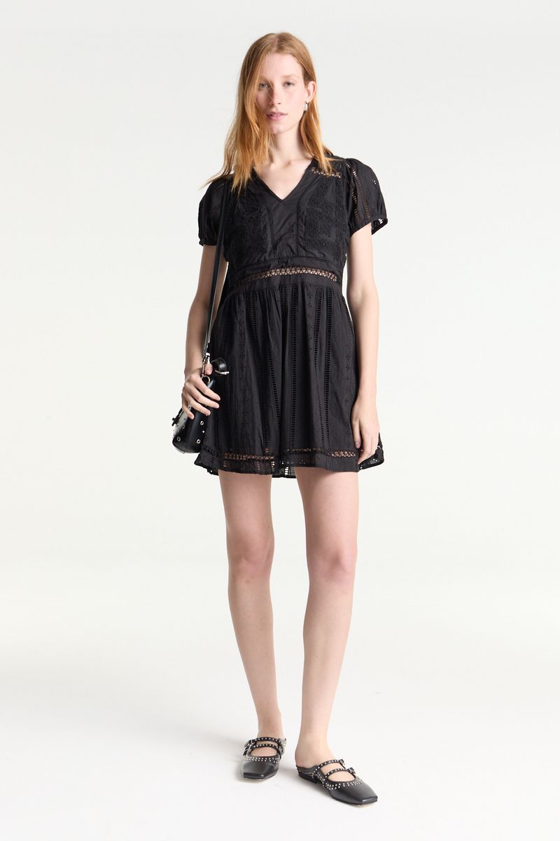 Vestido corto escote en V broderie con mangas.