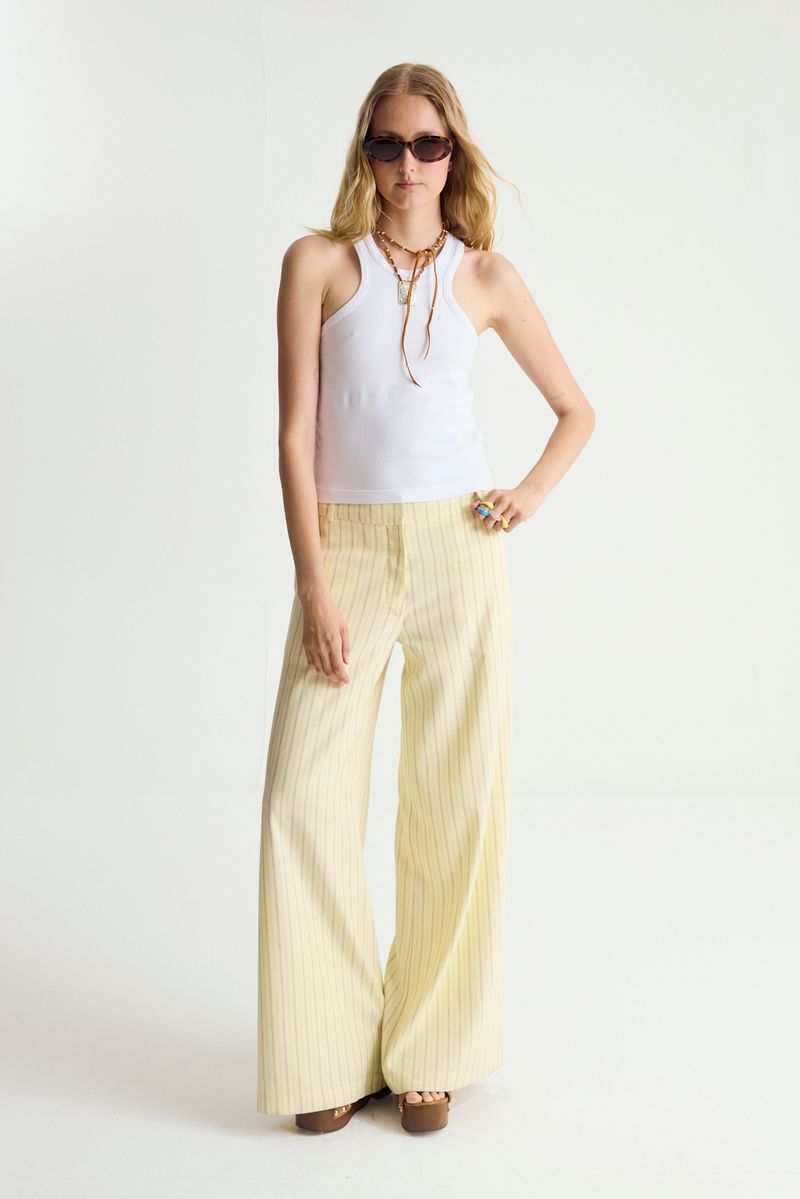 Musculosa de calce ajustado con escote redondo alto y sisas estilo racer entradas en el cuerpo en jersey de algodón con lycra. Un básico infaltable de super tendencia