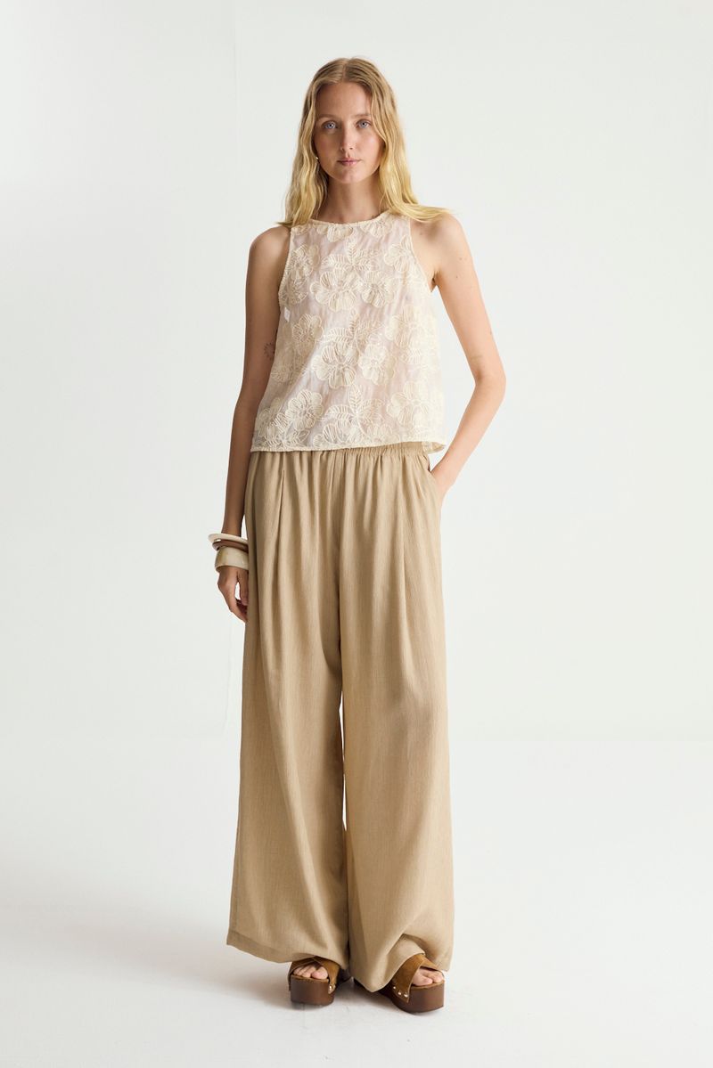 Top escote redondo a la base en una gasa bordada.tiene espalda abierta con 3 botones.