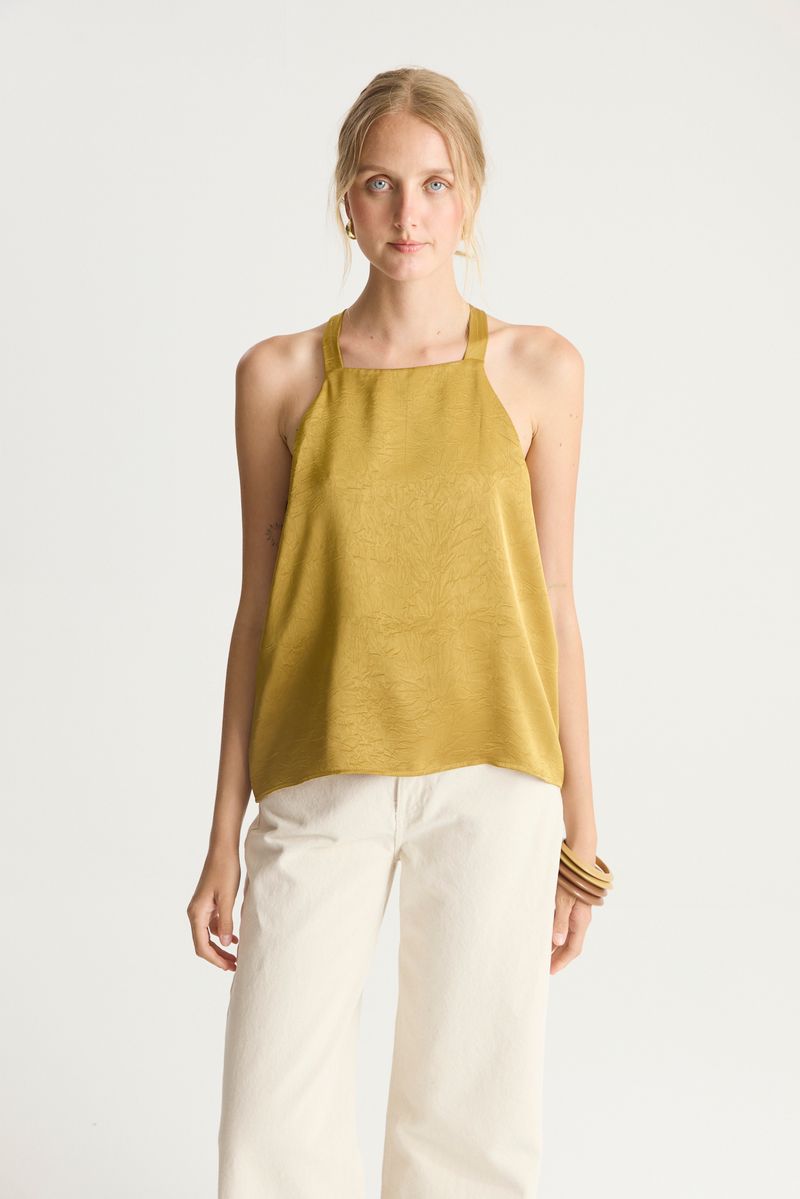 Top con escote hater,espalda con sustracción y lazo para atar.