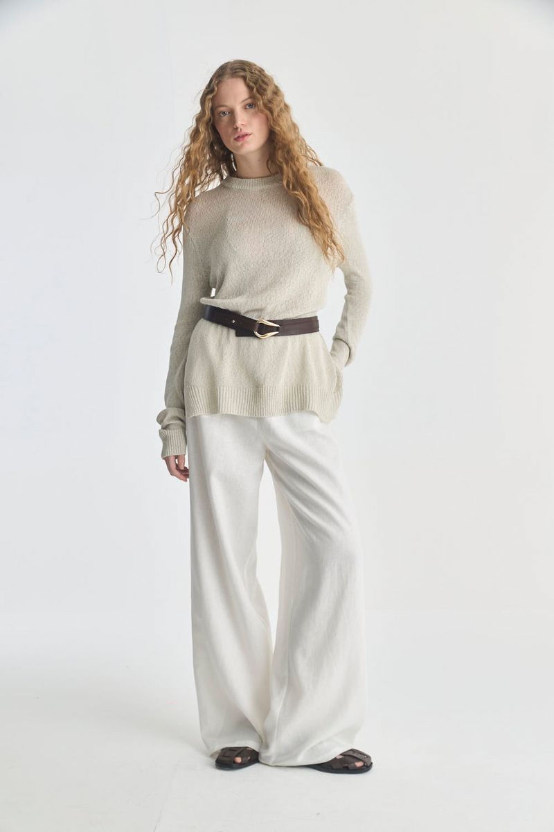 Pantalon jogger de lino viscosa, con elastico en cintura, bolsillos laterales . Silueta tiro alto, wide.
