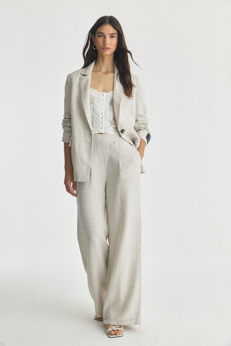 Pantalon 100% lino, recto, tiro alto. En la cintura lleva elastico en la parte de la espalda y sin elastico en frente para lograr un look sastrero descontracturado