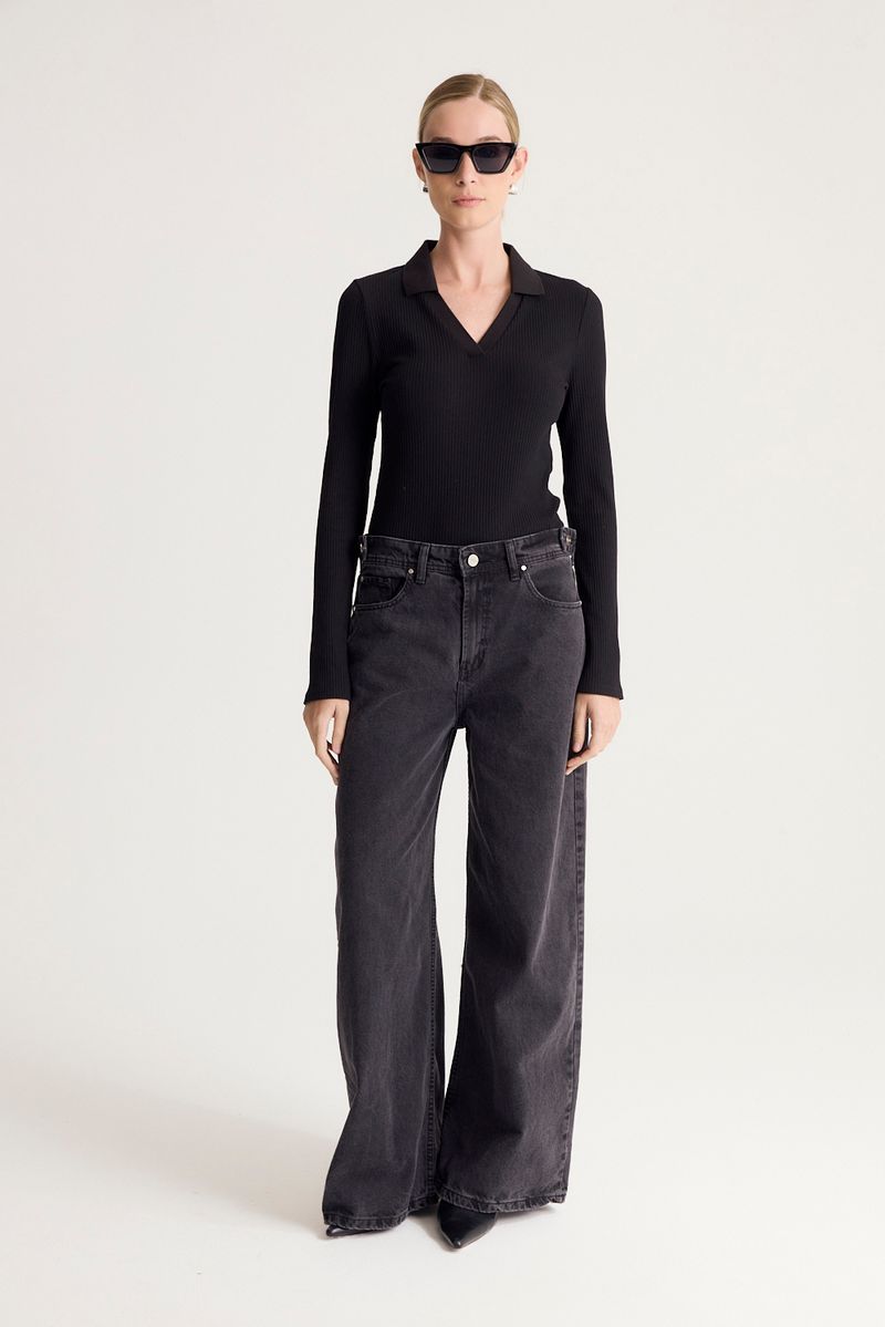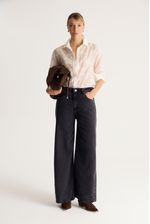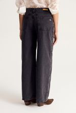 Jean de calce holgado, tiro bajo y pierna bien ancha. Lleva detalle de presillas ornamentales en la cintura. Realizado en tejido rígido 100% algodón bien liviano
