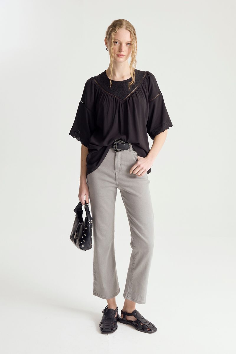 Jean de calce regular, tiro medio y pierna ajustada en el muslo y algo abierta hacia la botamanga. Producto importado con tejido premium