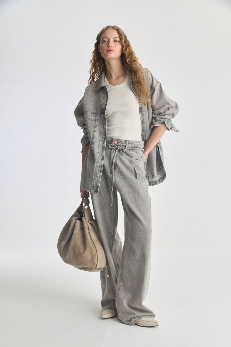 Camisaco de calce oversize, realizado en denim 100% algodón, con efecto lavado en variante gris y mid blue.