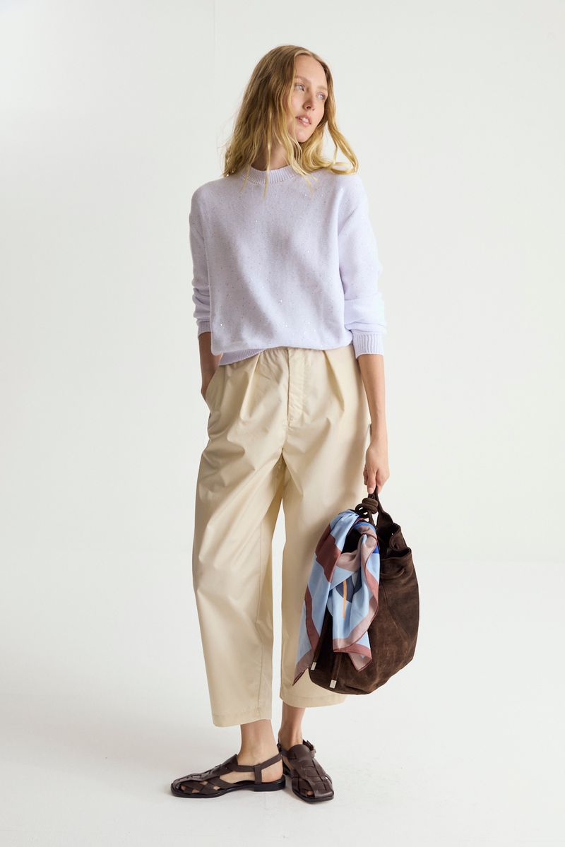 Sweater tejido liviano con lentejuelas,de calce holgado y escote redondo.