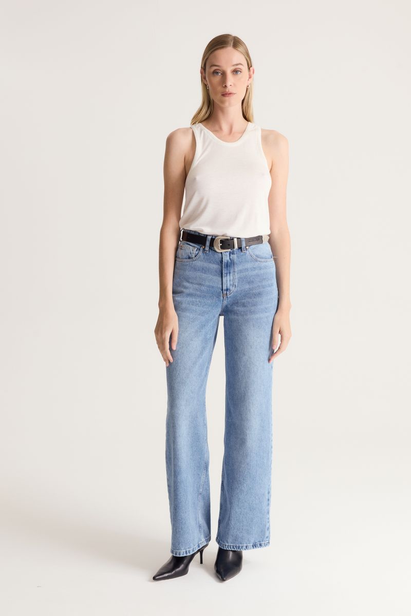 Musculosa de calce regular con escote u profundo con tirilla tejida confeccionada en jersey de viscosa con hilos de lurex metalico