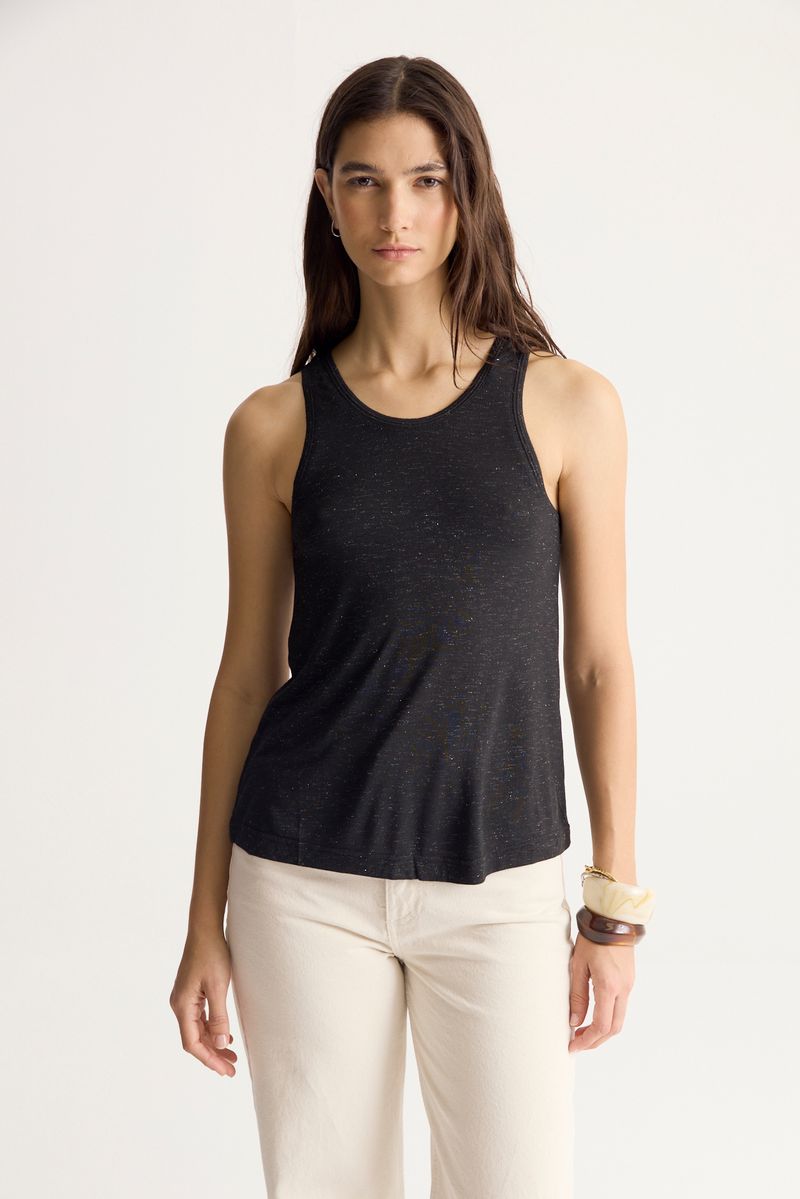 Musculosa de calce regular con escote u profundo con tirilla tejida confeccionada en jersey de viscosa con hilos de lurex metalico