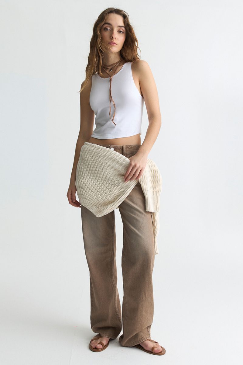 Musculosa crop de calce ajustado con escote a la base confeccionada en jersey de algodón con elastano