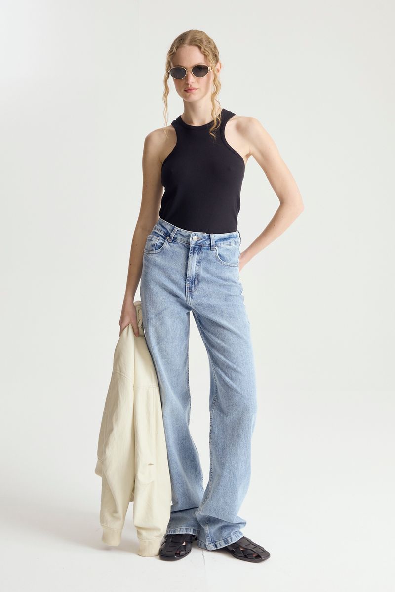 Musculosa de calce ajustado con escote a la base y breteles entrados en delantero que descubren bien los hombros confeccionada en jersey de algodon con elastano