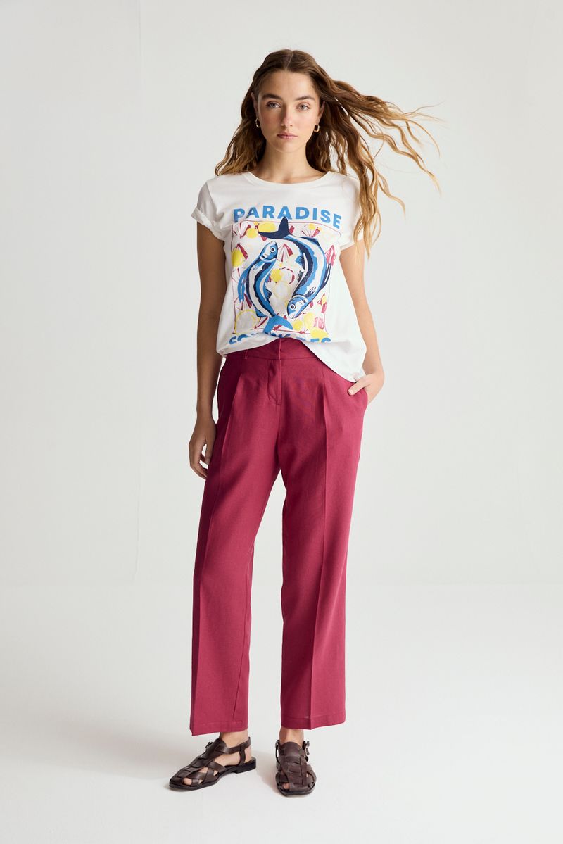 Remera de calce regular con escote redondo, manga corta y estampa central exclusiva, confeccionada en jersey de calidad sustentable 100% algodòn bci