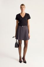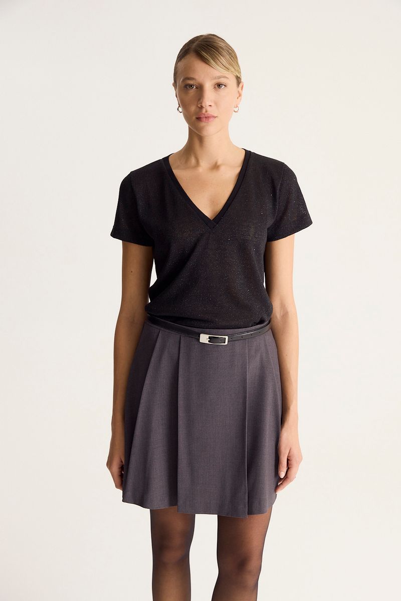 Remera de calce regular con escote redondo con cuello tejido confeccionada en jersey de trama abierta con entretejido de lentejuelas