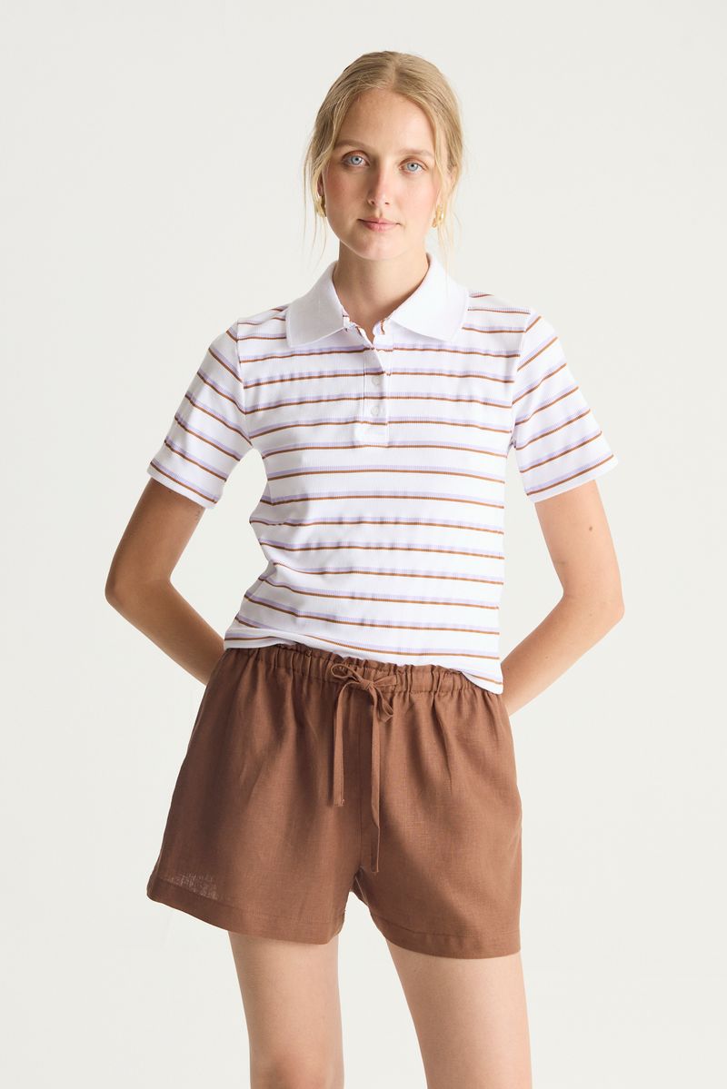 Remera cuello polo de calce relajado confeccionada en jersey pesado rayado 100% algodón