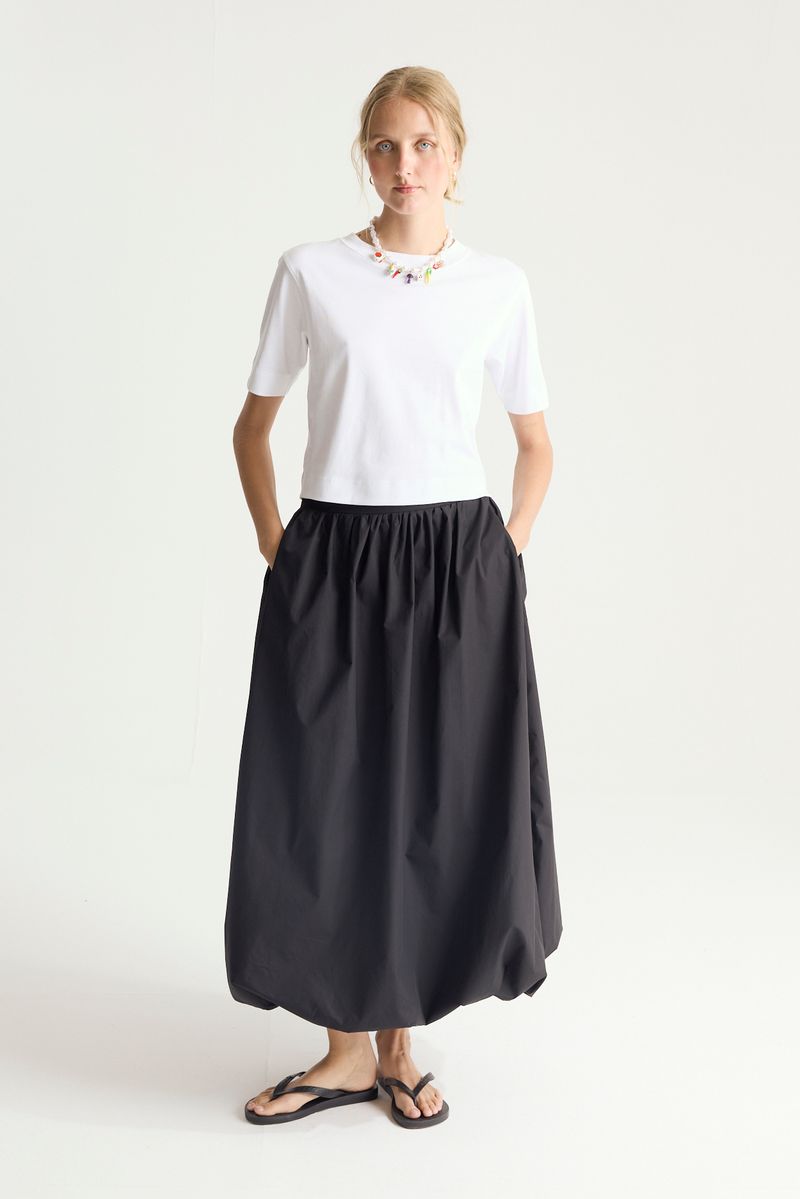 Remera de calce regular con escote a la base, manga corta y detalles de costuras confeccionada en perú en interloque de calidad premium 100% algodón pima