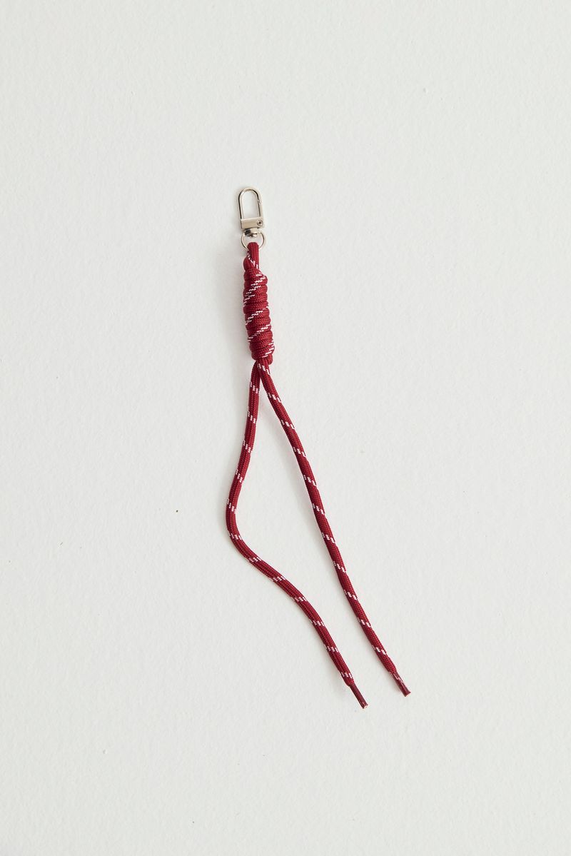 Llavero realizado en soga con nudo y mosqueton para poder engancharlo a las llaves o a tu cartera