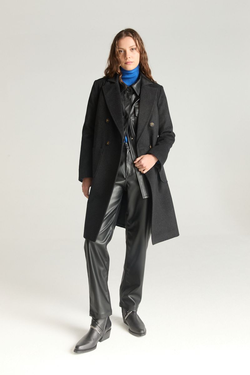 ABRIGO DE PAÑO PREMIUM CON DOBLE ABOTONADURA Y SOLAPA CRUZADA. LLEVA BOLSILLOS EN DELANTERO Y TAJO EN ESPALDA. CONTIENE LANA EN SU COMPOSICION