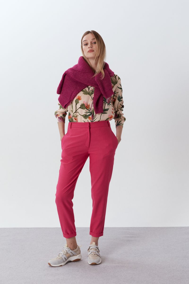Pantalón esencial de twill sastrero con elástico en cintura y broche sastrero interno. Lleva bolsillos en frente y puño rebatido
