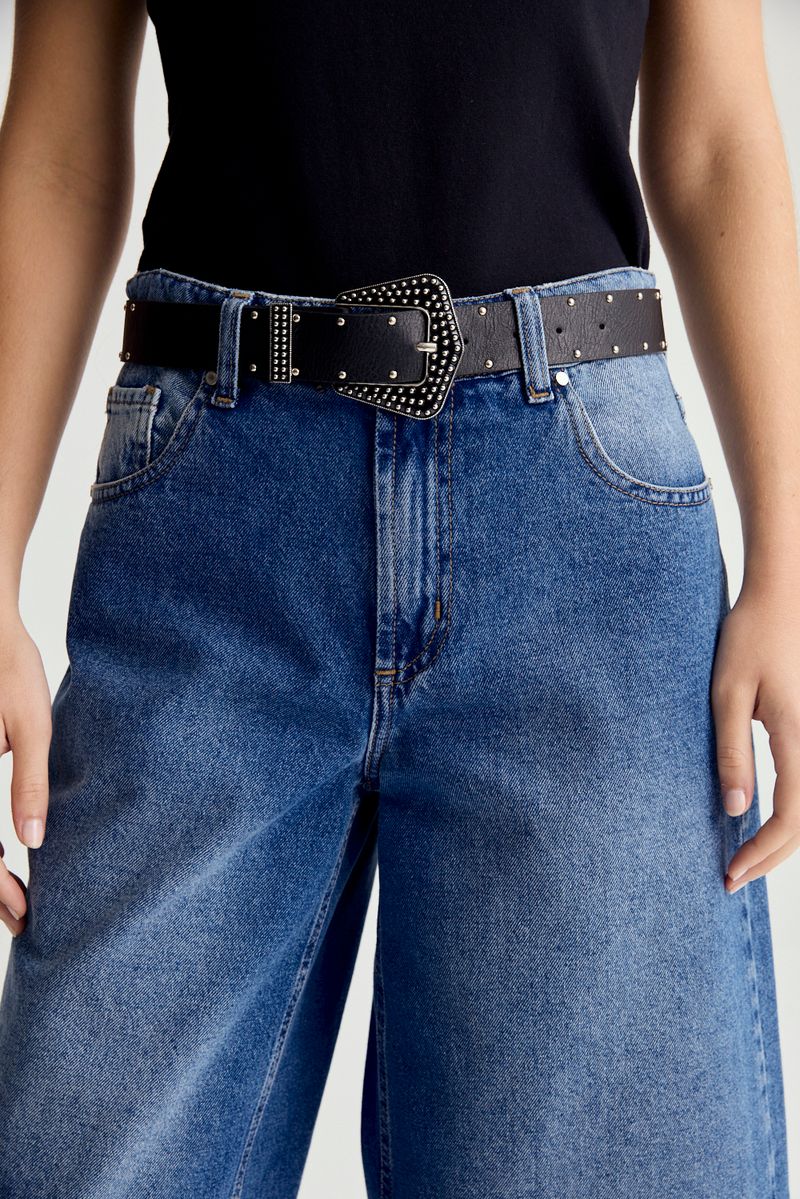 Cinto realizado en pu con detalle de tachas en todo el cinto y hebilla al tono