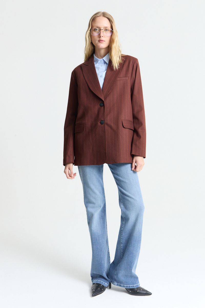 Blazer sastrero tizado con solapa sastrera y doble abotonadura recta en frente. Lleva bolsillos con tapa y tajo en espalda para su mayor confort en movimiento.