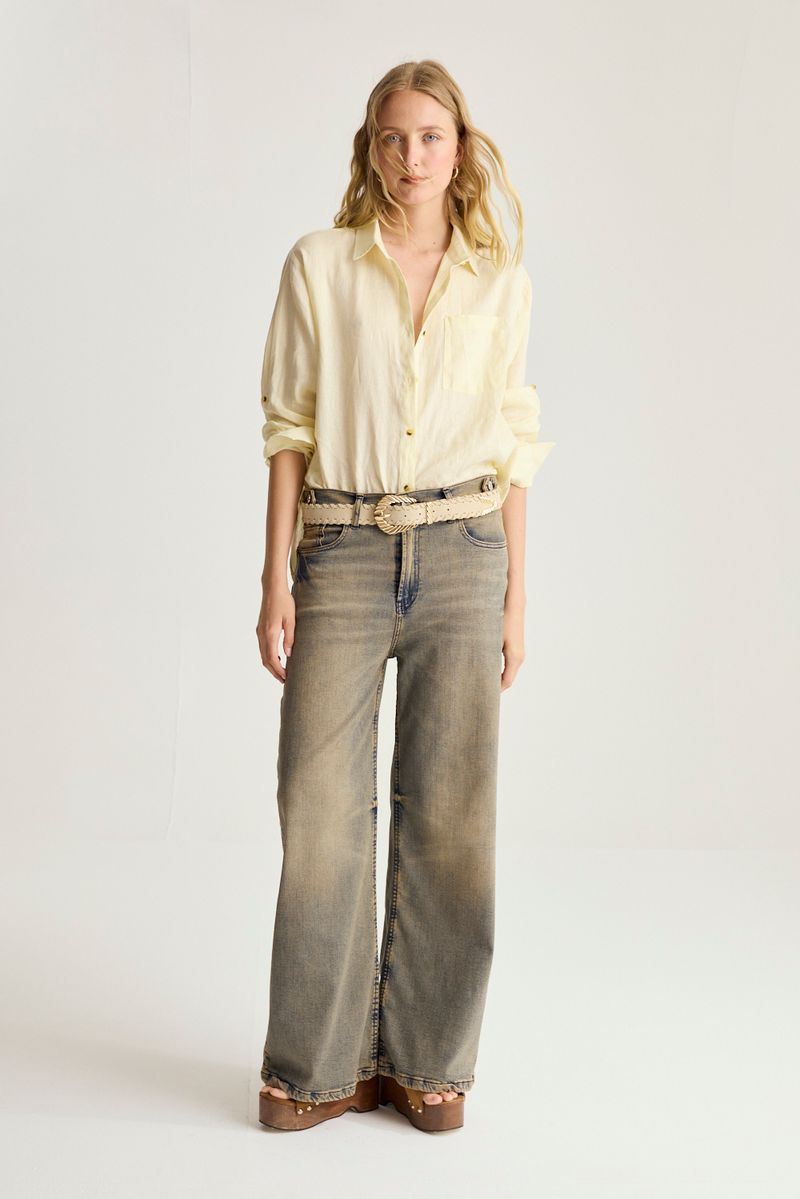 Jean de calce holgado, tiro bajo y pierna bien ancha. Realizado en tejido premium 99% algodón, 1% elastano para darle un toque de confort a la prenda.