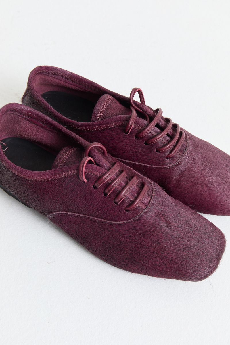 Zapato acordonado, realizado en pelo de cuero vacuno animal print.