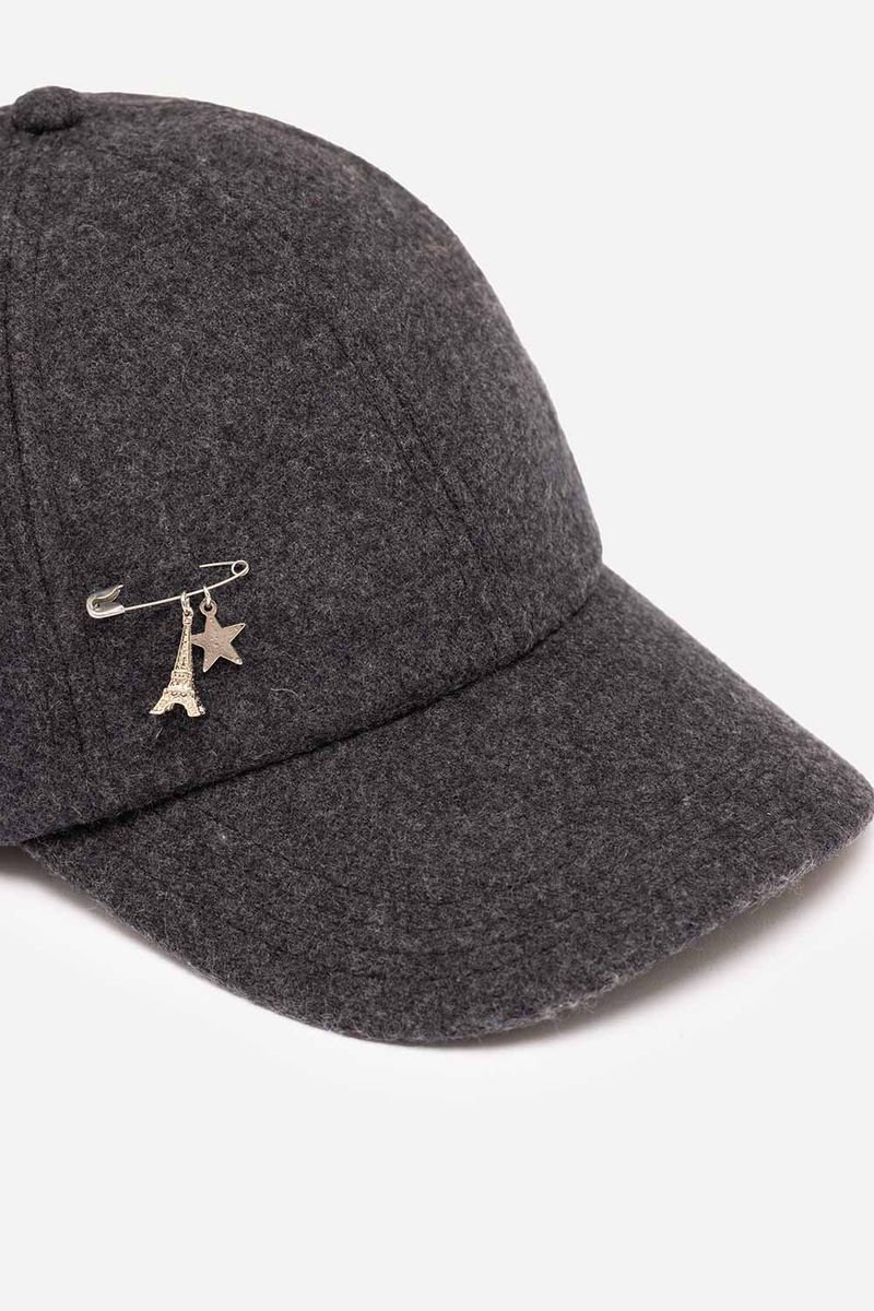 Gorra de paño liso, con aplique de pin colgante en su lateral