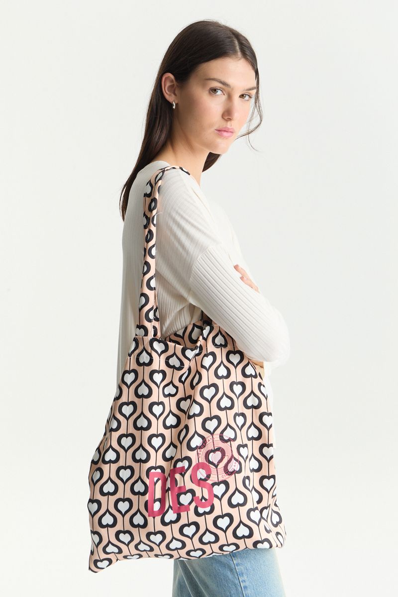 Bolsa ecobag, realizada a traves de descartes de tela, reutilizando sobrantes y generando un producto nuevo. Esta bolsa esta confeccionada por los chicos de la cooperativa san cayetano.