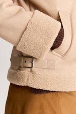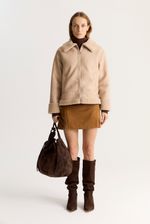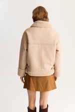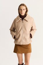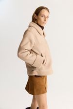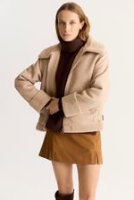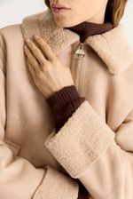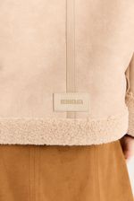 Gamulan realizado en tejido bifaz, de un lado simil gamuza y del otro y tejido tipo corderito. El corderito está a la vista en el cuello y en la parte inferior. Lleva avíos marcarios personalizados