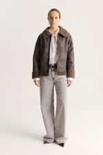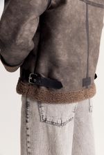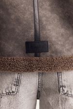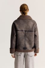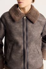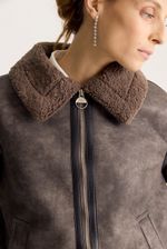 Gamulan realizado en tejido bifaz, de un lado simil gamuza y del otro y tejido tipo corderito. El corderito está a la vista en el cuello y en la parte inferior. Lleva avíos marcarios personalizados