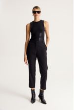 Pantalón sastrero slim tiro alto. Cintura con gancho sastrero interno y cierre en delantero. Lleva bolsillos laterales. En espalda pinzas y bolsillos invisibles