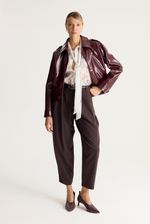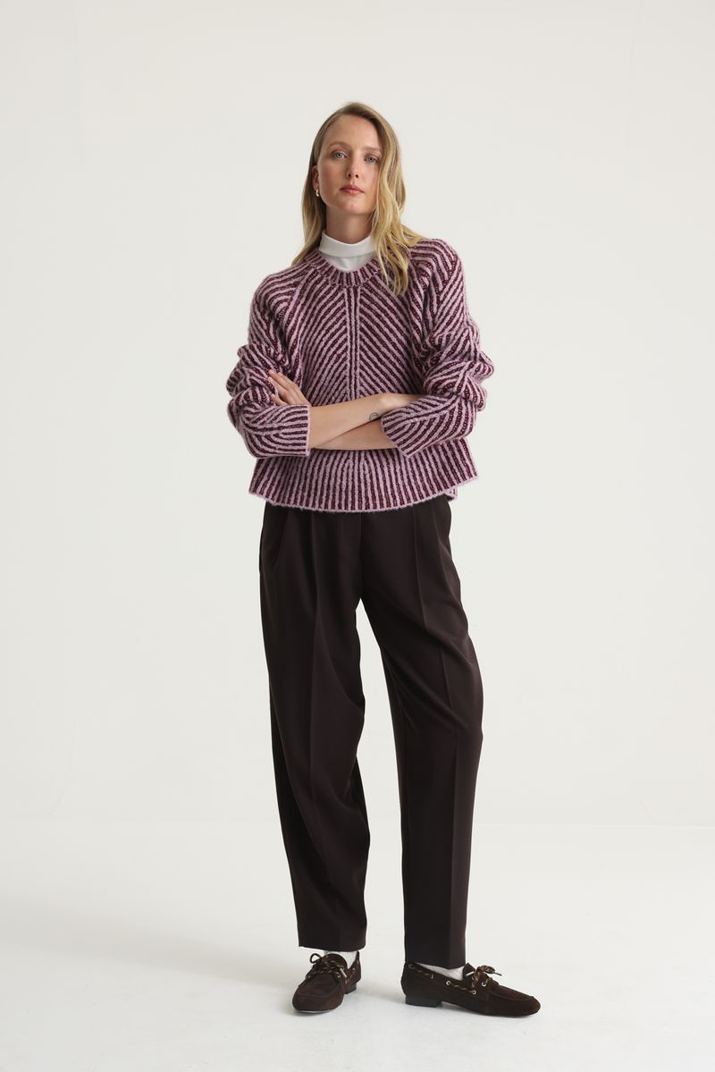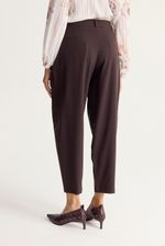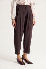 Pantalón sastrero con pinzas en frente y silueta tipo baggy, mas angosto en el ruedo. Lleva bolsillos en lateral y botón en cintura