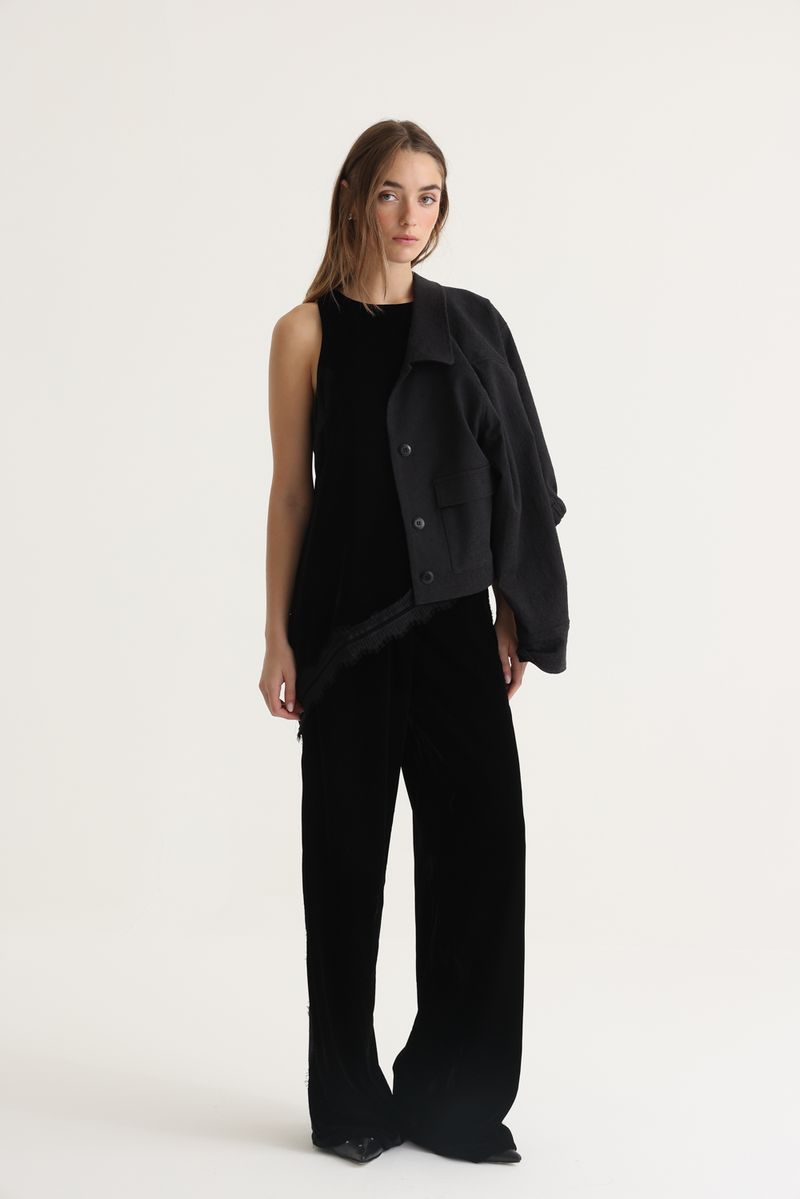 Pantalón aterciopelado con aplique de encaje en el lateral.