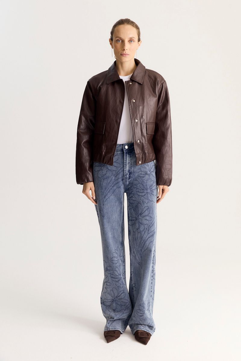 Jean de calce regular y pierna recta. Lleva detalle de bordado íntegramente en todo el pantalón. El dibujo es desarrollo exclusivo de esta temporada.