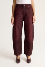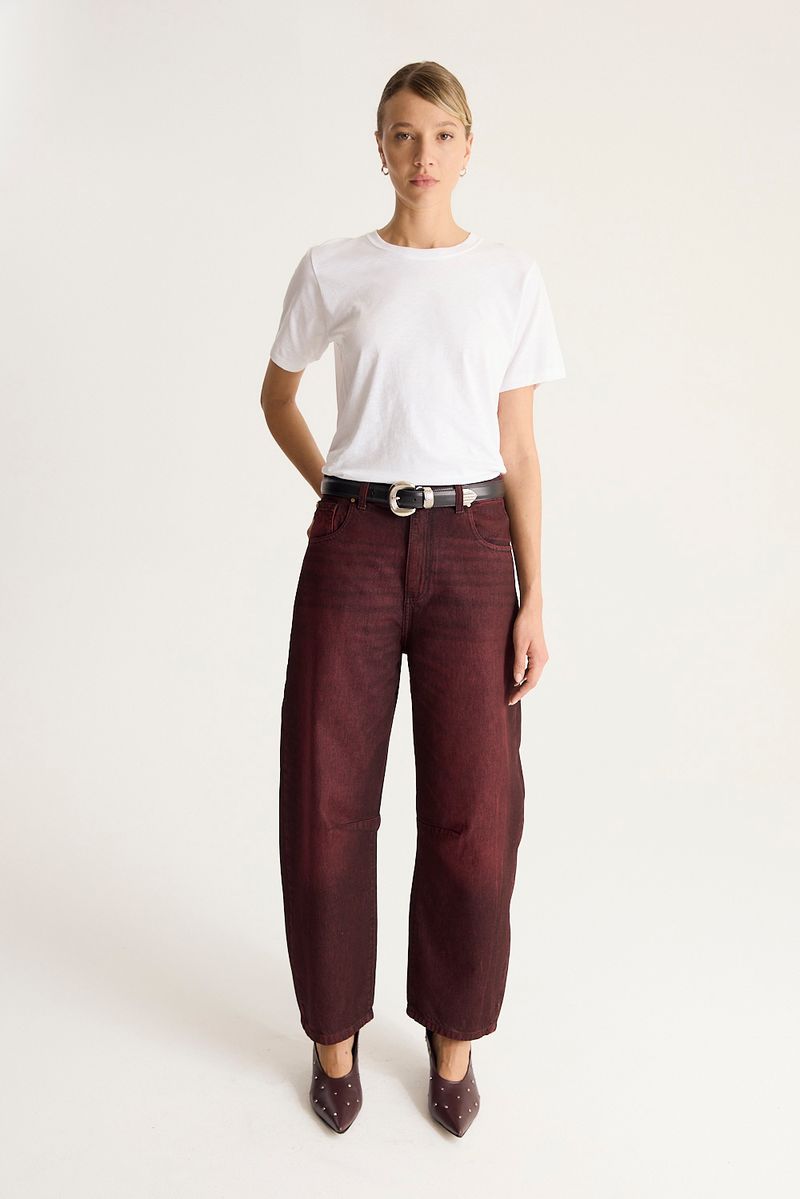 Jean de calce holgado con pierna estilo carrot, bien ancha en las caderas y más holgada hacia los tobillos. Realizado en tejido 100% algodón con efecto sobreteñido en color marrón