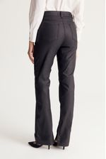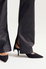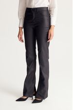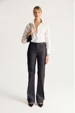 Jean de calce regular y tiro medio. Tiene una pierna que acompaña el cuerpo sin ajustar y detalle de tajos en las botamangas. Realizado en tejido importado con acabado efecto cuero
