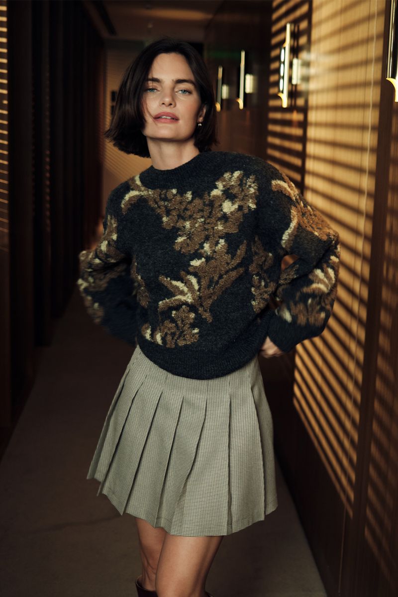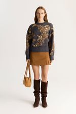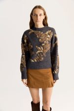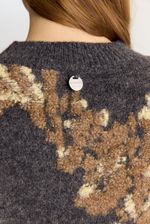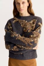 Sweater tejido jacquard bitono con volúmen,de calce regular con escote redondo a la base. Este artículo contiene un porcentaje de lana y poliester reciclado en su composición.