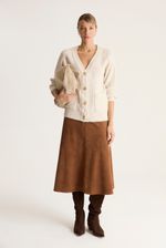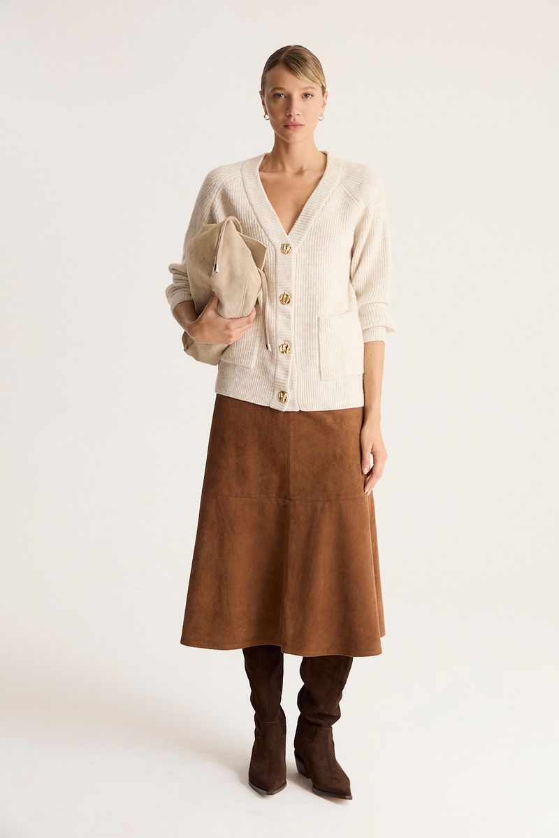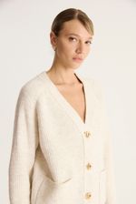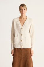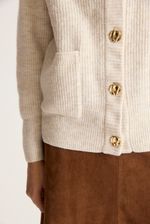 Cárdigan de calce regular, con manga ballon y botones metalizados en cartera.tiene bolsillos plaqué en el frente de la prenda.