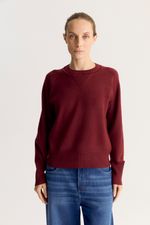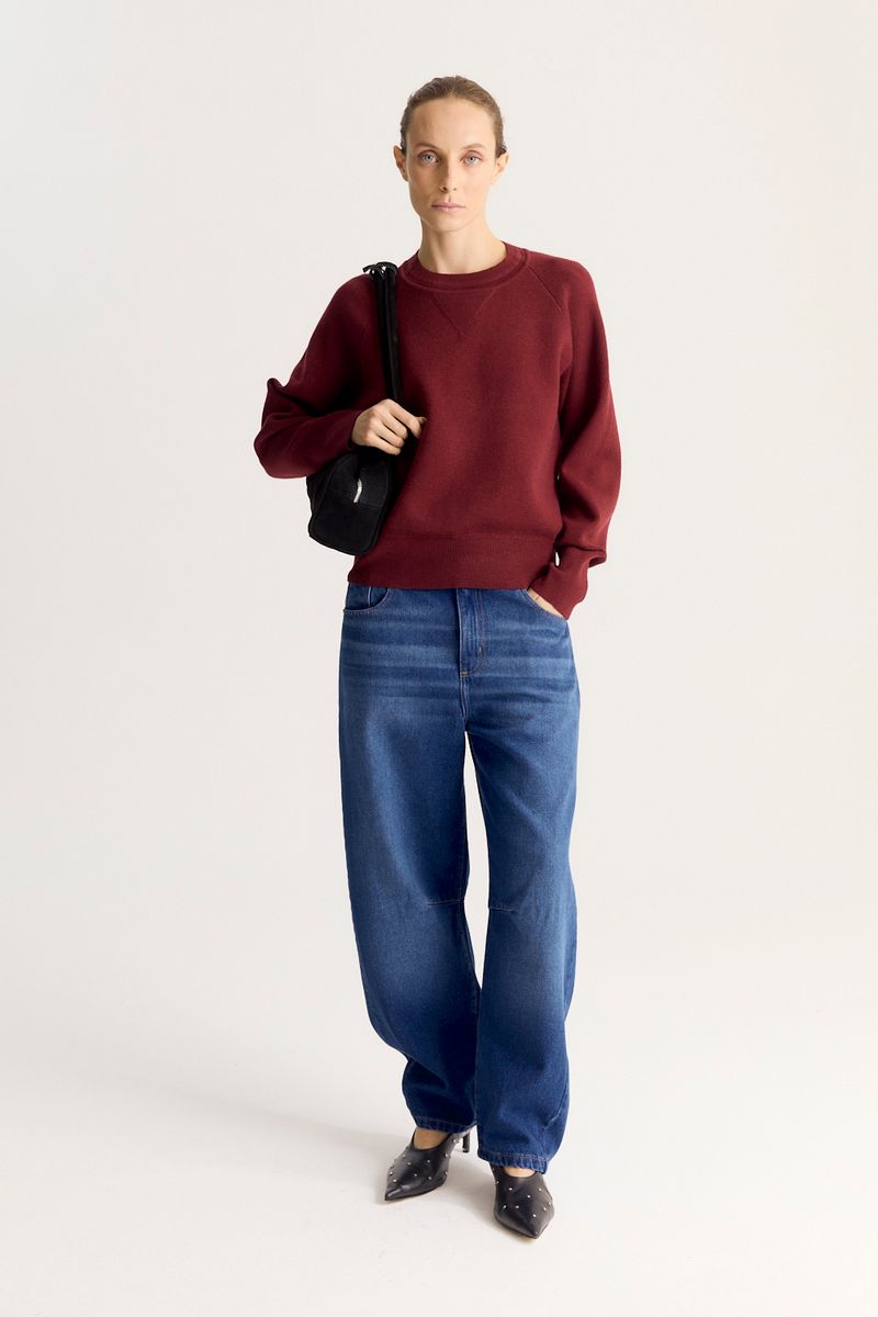 Sweater de tejido compacto,de calce regular con escote redondo y mangas balloon con puño.tiene manga ranglan.