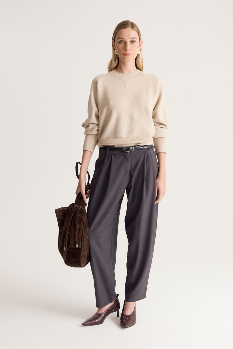 Sweater de tejido compacto,de calce regular con escote redondo y mangas balloon con puño.tiene manga ranglan.