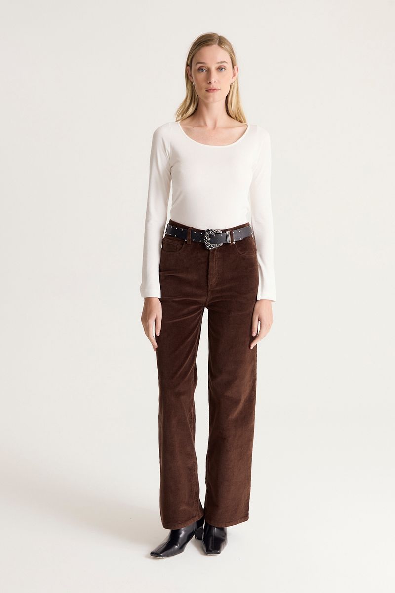 Remera de calce ajustado con escote con forma con botones y manga larga confeccionada en ribb con ligero brillo de calidad premium
