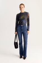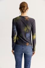 Remera de calce ajustado con escote redondo y manga larga confeccionada en tejido de jersey con lurex con estampa exclusiva de la colección