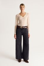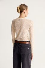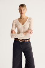 Remera de calce ajustado con escote redondo y manga larga confeccionada en ribb con estampa devoreada de look boho