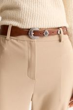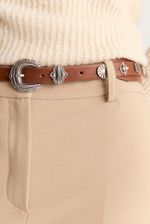 Cinto de pu tipo folk con detalle de tachas labradas y hebilla ideal para usar arriba de vestido